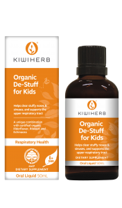 KiwiHerb Organic De stuff for kids gồm các thành phần thảo dược tự nhiên, Elderflower hữu cơ , Ribwort và rễ Echinacea , có tác dụng hỗ trợ đường thở thông thoáng và giúp làm lỏng chất nhầy để hỗ trợ trẻ dễ thở. Echinacea cũng cung cấp hỗ trợ miễn dịch toàn thân.