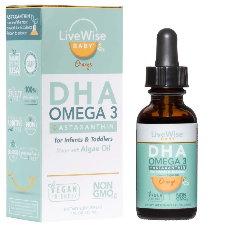 DHA Omega 3 dạng giọt LiveWise Baby là sản phẩm bổ sung DHA cho trẻ đến từ thương hiệu LiveWise của Mỹ. DHA LiveWise Baby được chiết xuất từ dầu tảo hữu cơ, Non GMO - không biến đổi gene, cho phép cơ thể hấp thụ nhiều omega-3 hơn