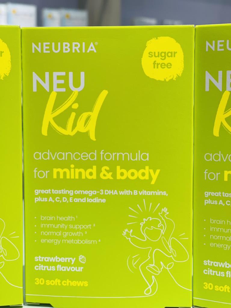 Neubria Neu kids fomular for mind and body là một chất bổ sung tự nhiên hỗ trợ các yêu cầu sinh lý của một đứa trẻ đang lớn. Với 12 thành phần hoạt tính, nó hỗ trợ hệ thống miễn dịch cân bằng, xương và răng chắc khỏe cũng như sức khỏe của tim, não và mắt. Nó chứa omega-3 EPA & DHA chất lượng cao từ các nguồn bền vững được chứng nhận bởi Friend of the Sea. Một viên nhai Neu Kid hàng ngày cung cấp các chất dinh dưỡng quan trọng cho sự tăng trưởng và phát triển tối ưu của trẻ. Dành cho lứa tuổi từ 3 - 12 tuổi.