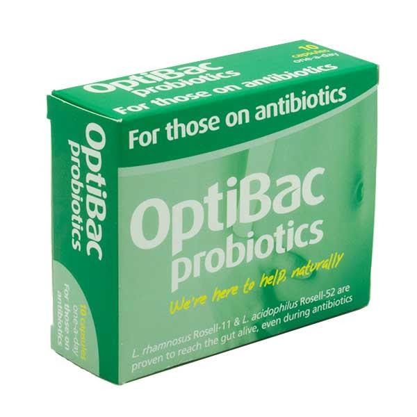 Men vi sinh Optibac For Those On Antibiotics bổ sung lợi khuẩn cho người dùng kháng sinh. Sản phẩm giúp cân bằng lại hệ vi sinh của cơ thể, giảm thiểu tác dụng phụ cho cơ thể trong giai đoạn sử dụng kháng sinh.