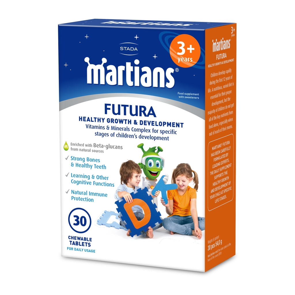 Kẹo tăng đề kháng cho trẻ từ 3 tuổi Martians Futura bổ sung các vitamin và khoáng chất tăng cường canxi, giúp trẻ phát triển chiều cao và cho xương, răng chắc khoẻ. Ngoài ra sản phẩm còn hỗ trợ tăng cường miễn dịch cho bé, giúp bé khoẻ mạnh và phát triển toàn diện hơn.